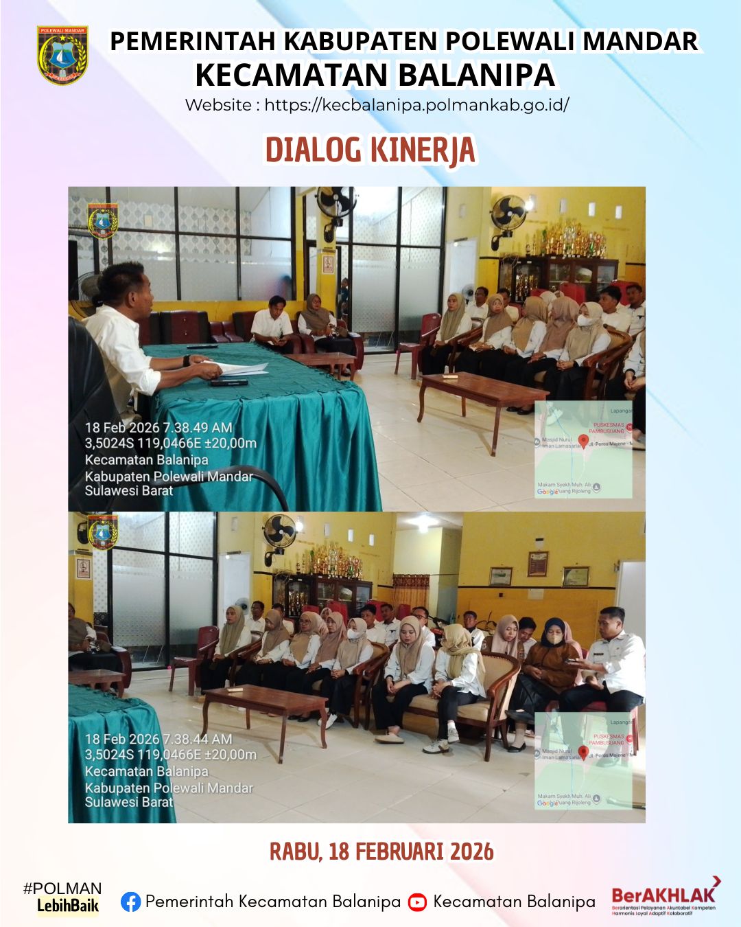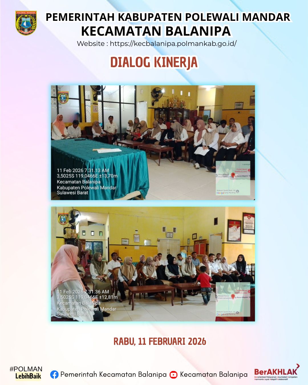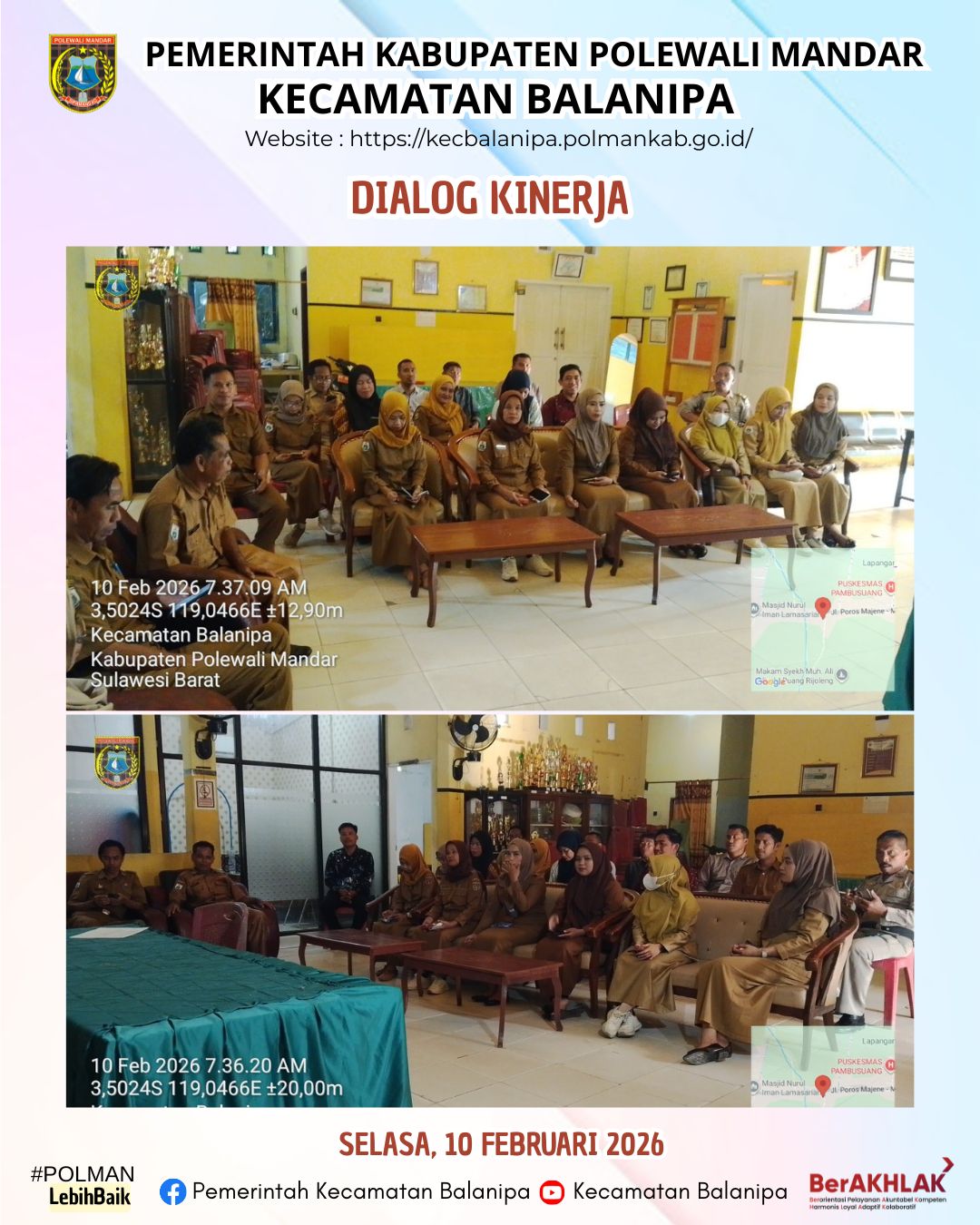 Balanipa, 12 Februari 2026. Melaksanakan Dialog Kinerja dengan Tema “Presensi Polman 2.0” Permasalahan yang terjadi saat adanya Aplikasi Baru (Presensi Absensi Polman) Staf Pegawai Kecamatan ...