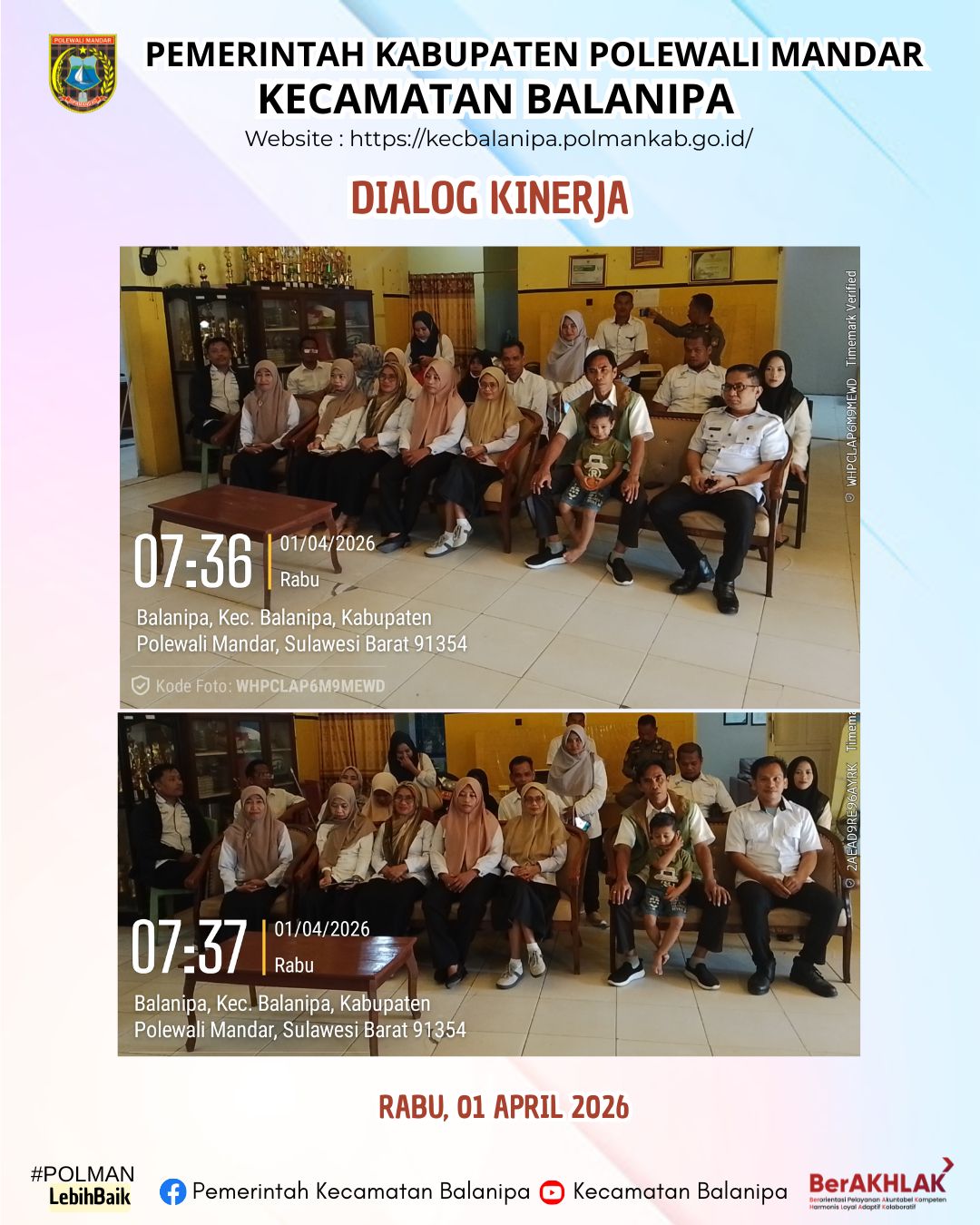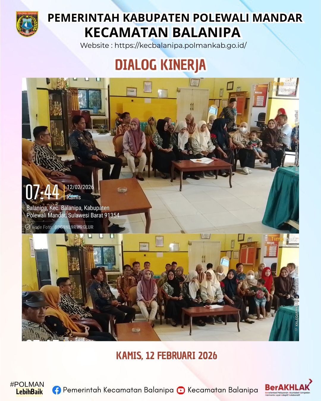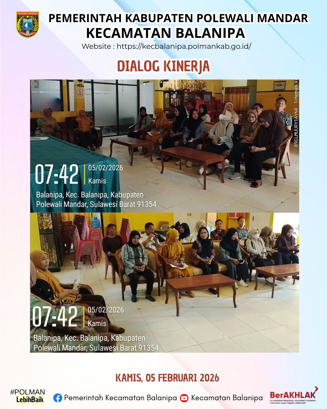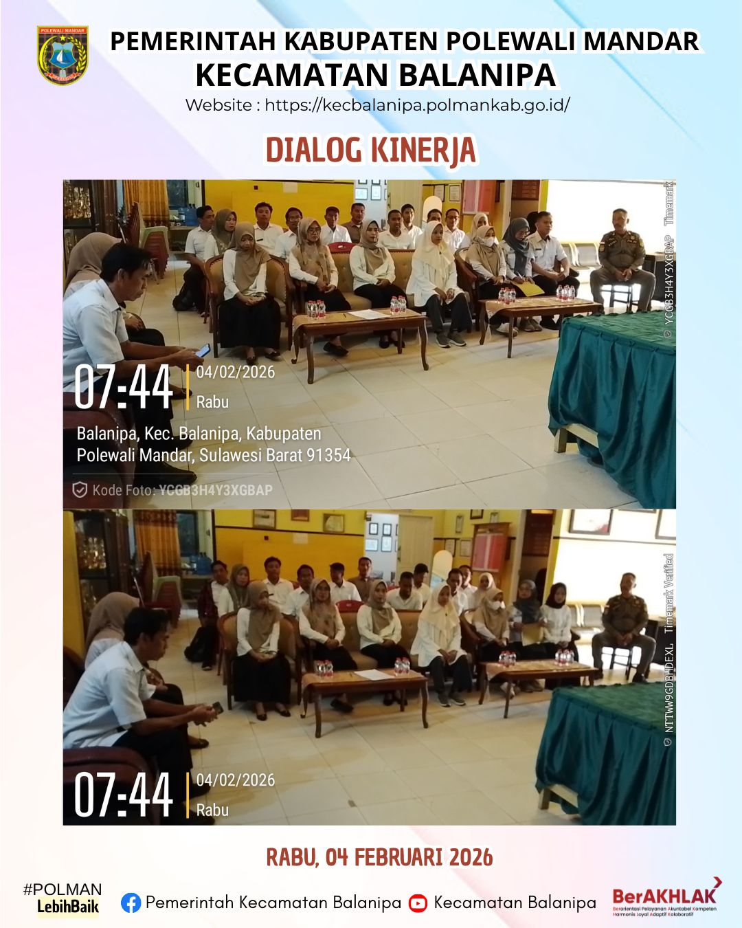Balanipa, 12 Februari 2026. Melaksanakan Dialog Kinerja dengan Tema “Presensi Polman 2.0” Permasalahan yang terjadi saat adanya Aplikasi Baru (Presensi Absensi Polman) Staf Pegawai Kecamatan ...