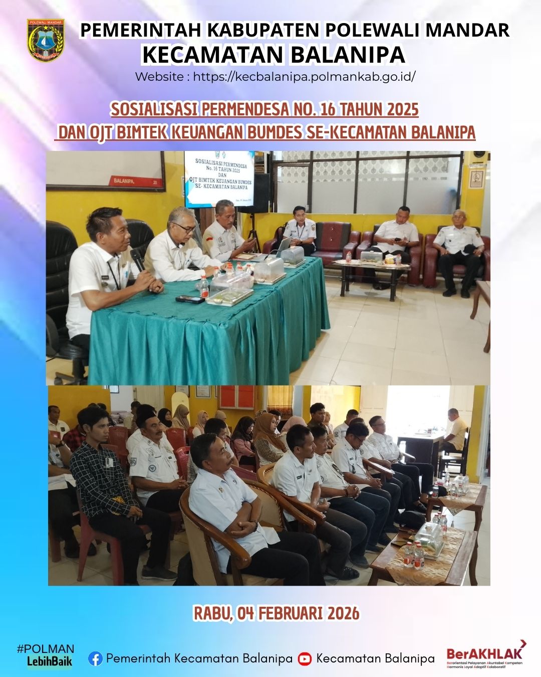 Balanipa, 04 Februari 2026. Menindaklanjuti Peraturan Menteri Desa dan Pembangunan Daerah Tertinggal (Permendesa PDT) Nomor 16 Tahun 2025 tentang Petunjuk Operasional atas Fokus Penggunaan ...